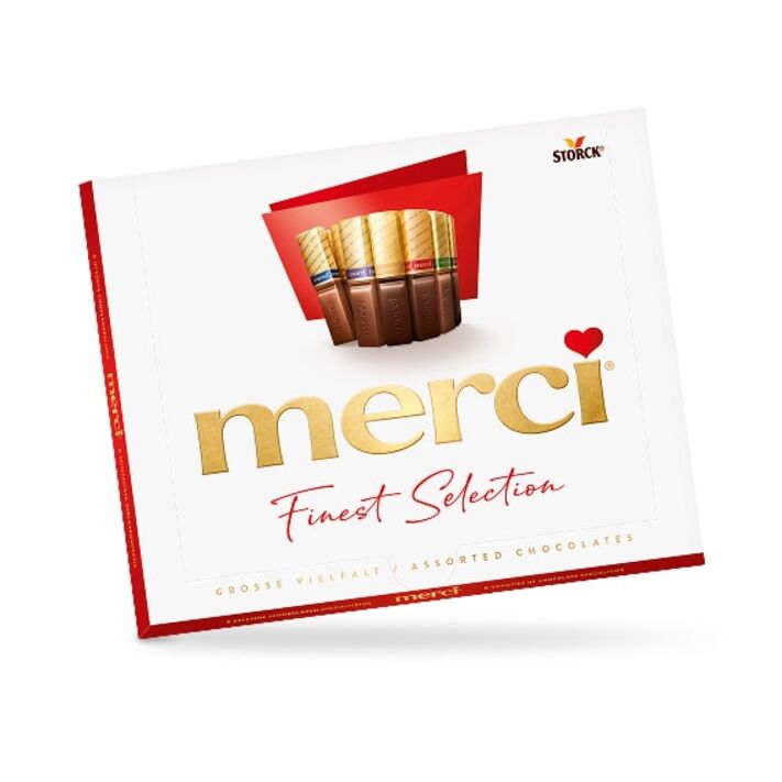 Finest chocolate, made from selected ingredients and individually wrapped in gold: this is how merci made its way into people’s hearts since 1964. Not surprisingly, as merci is the gift to give as a very special thank you. Thank you means merci - merci, for being you.